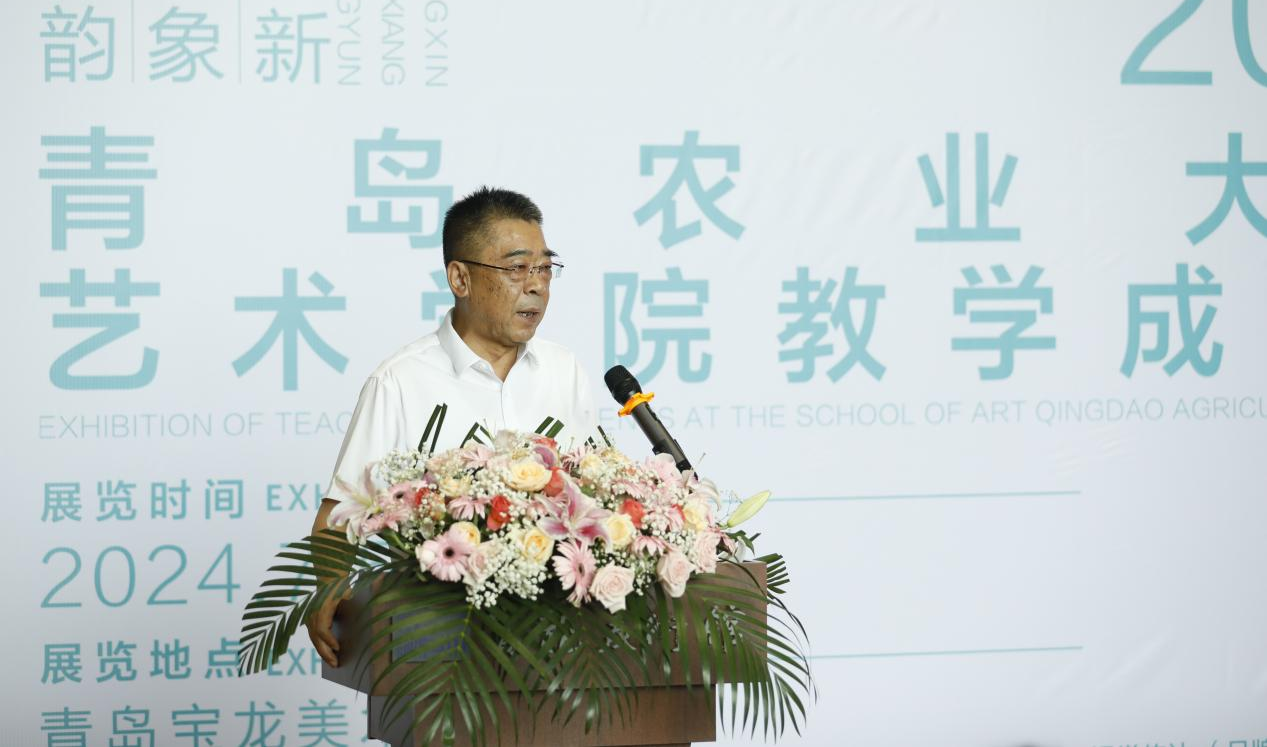 胶州市文联党组书记、主席宋祥文致词,对本次校企合作做出高度评价,指出校企合作能够为员工提供更加丰富的实践机会,也希望同学们利用好这一资源,在专业领域不断钻研,在艺术领域发光发热,为乡村振兴作出贡献。