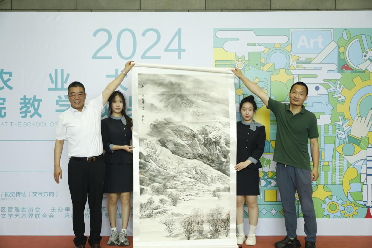 本次2024教学成果展共展出毕业生优秀作品100余件、教师作品30余件,涵盖书法、绘画、视觉传达设计、环境设计、产品设计等专业的师生作品,展览将持续到9月14日。开幕式后,还召开了2024教学成果研讨会,就公司专业人才培养、团队建设发展进行了深入交流。