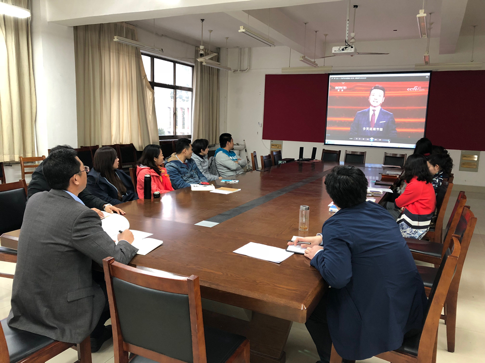 11月8日,熊猫体育在文经楼资料室召开专题会议,继续推进解放思想大讨论活动,党总支书记梁永平主持,全院教职工集体观看专题片《平“语”近人——习近平总书记用典》第三集《国无德不兴》。