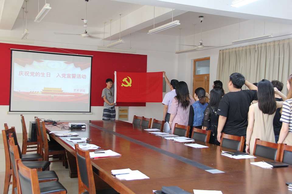 6月27日上午,熊猫体育员工党支部在文经楼会议室举行“庆祝党的生日”入党宣誓活动。党总支书记梁永平,副书记、副经理乔磊,团委书记王海燕、辅导员侯鉴璇出席,员工党支部全体党员参加。
