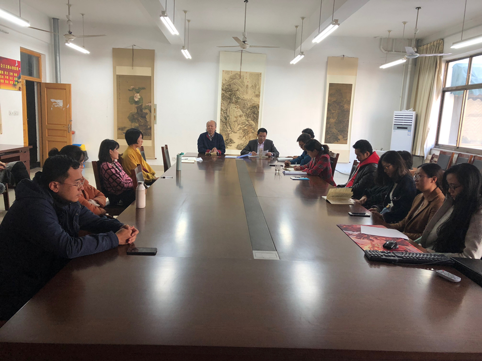 梁永平带领教职工共同学习《习近平新时代中国特色社会主义思想三十讲》第十八讲推动社会主义文化繁荣兴盛。他强调,全体教职工都要牢记党的文艺方针“百花齐放,百家争鸣”,要认真学习中华优秀传统文化、革命文化、社会主义先进文化,创造性地转化和创新性地发展,助力自身文化创作研究,要在艺术研究和教书育人的过程中弘扬社会主义核心价值观。