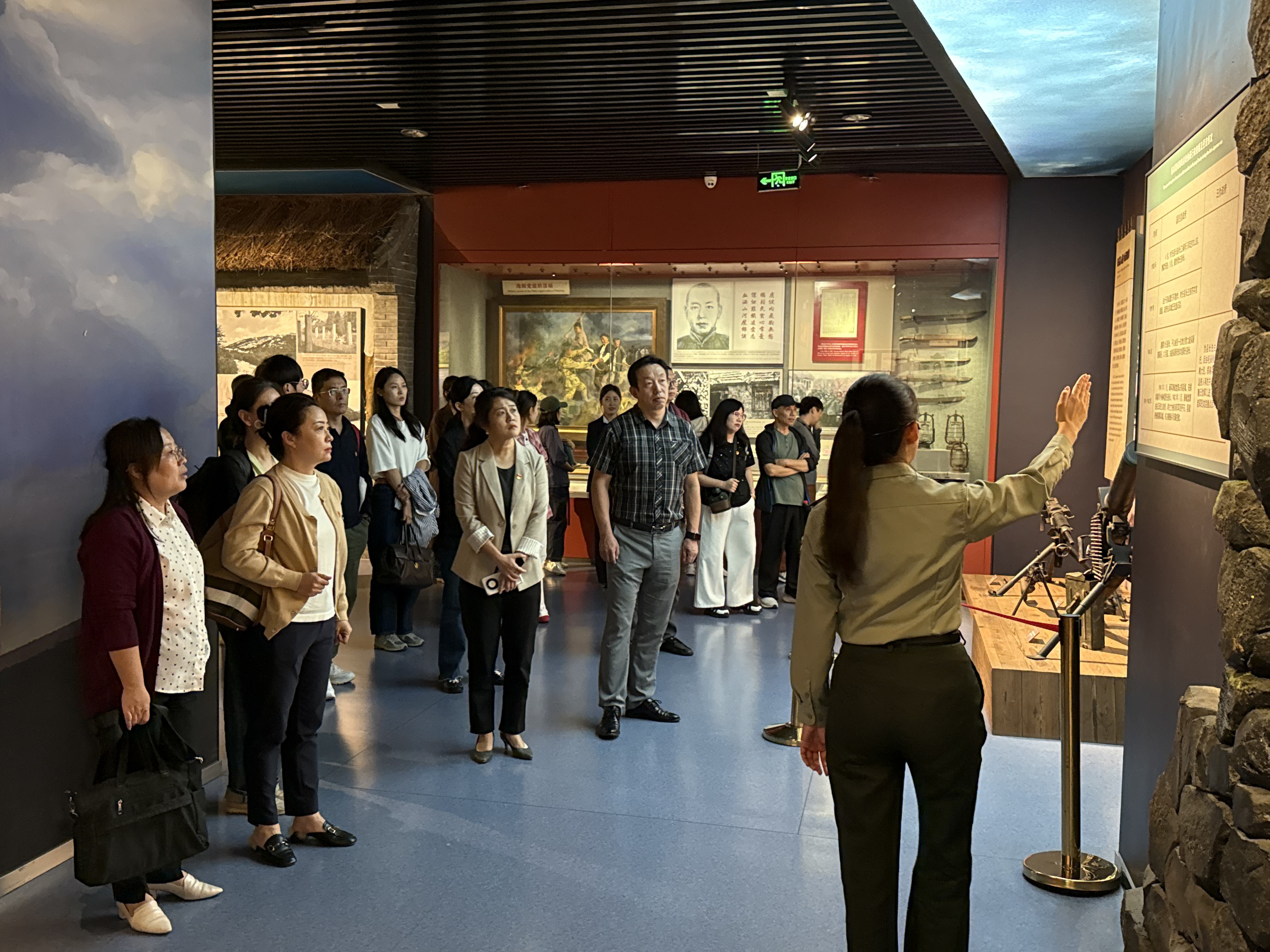 在讲解员的引导和讲解下,党员们有序参观了“抗战烽火燃海阳”“地雷战术破敌胆”“军民同心卫家园”等多个主题展区。展区内,泛黄的战地书信、锈迹斑斑的地雷残骸、栩栩如生的场景复原模型,以及动态播放的历史影像资料等,生动再现了抗日战争时期海阳军民凭借智慧与勇气发明的多种地雷战术,成功击退日伪军进攻的英雄事迹。党员们认真学习,深刻感悟伟大抗战精神,接受了一次深刻的爱国主义教育和党性修养洗礼。