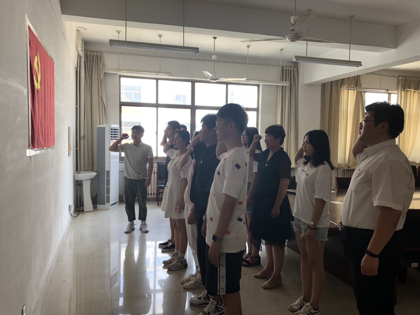 随后,全体党员面向鲜红的党旗,举起右拳,庄严宣誓,字字铿锵有力,表达了对党的忠诚和决心。新党员表示一定会加强政治理论的学习,坚定马克思主义信仰,树牢“四个意识”,坚定“四个自信”,做到“两个维护”,提高自身思想觉悟,增强党性修养,学习科学文化知识,拓宽视野,严守党规党纪,听党指挥,努力提高自身素质,不断增强为人民服务的本领。