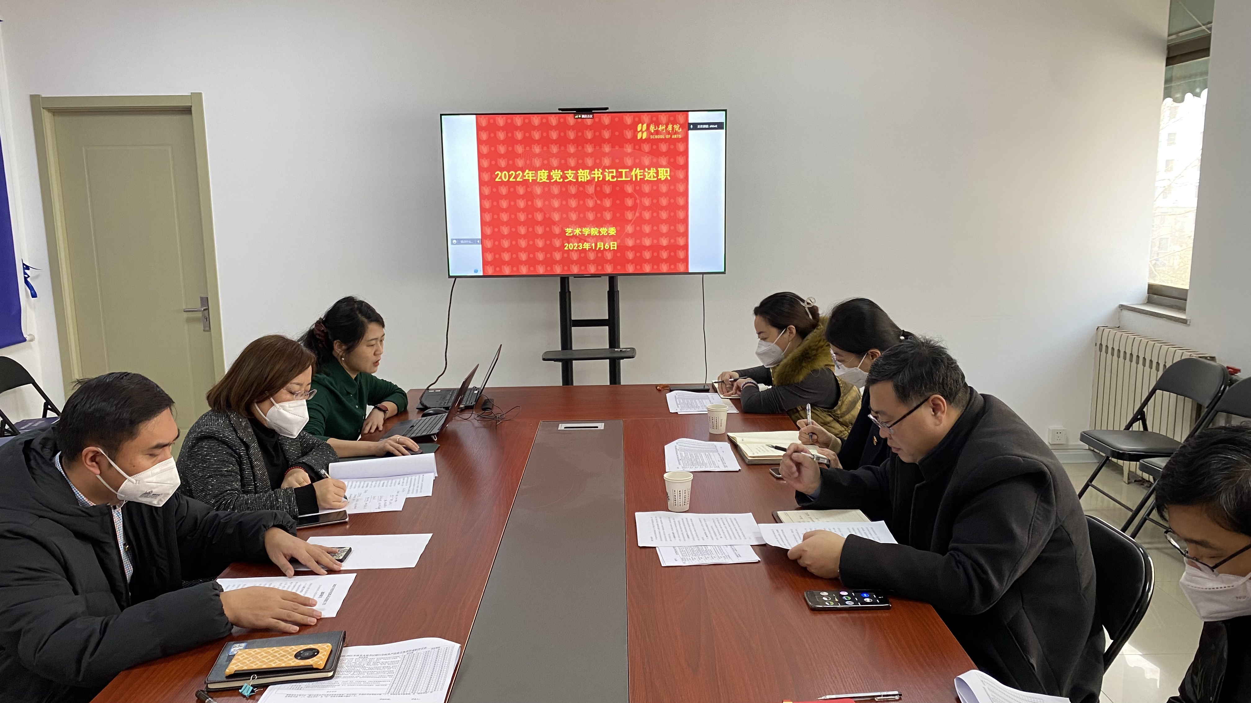 单连岱肯定了各党支部书记2022年度的工作,对第三支部获批教育部第三批全国党建工作样板支部培育建设单位,第一支部书记崔晓磊获批公司首批“双带头人”教师党支部书记工作室立项,以及在“抓党建促发展”下,绘画专业获山东省一流专业培育建设点、1项教学成果获山东省教学成果二等奖等中心工作成绩,给予肯定。