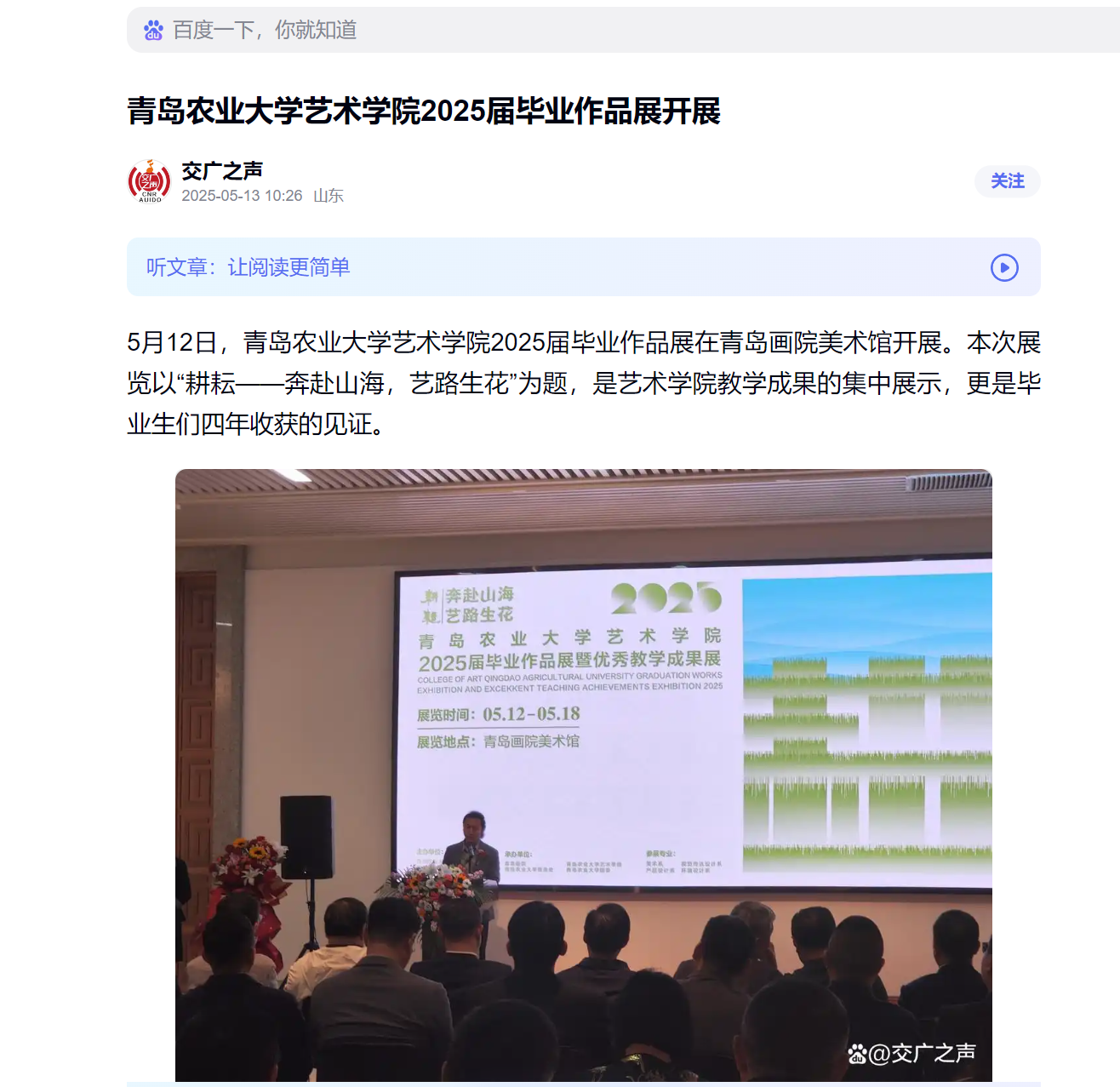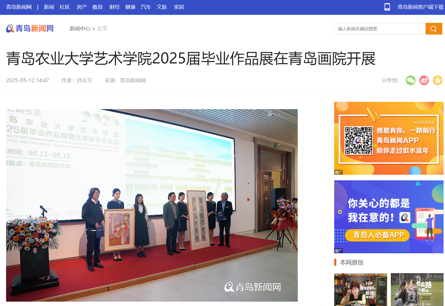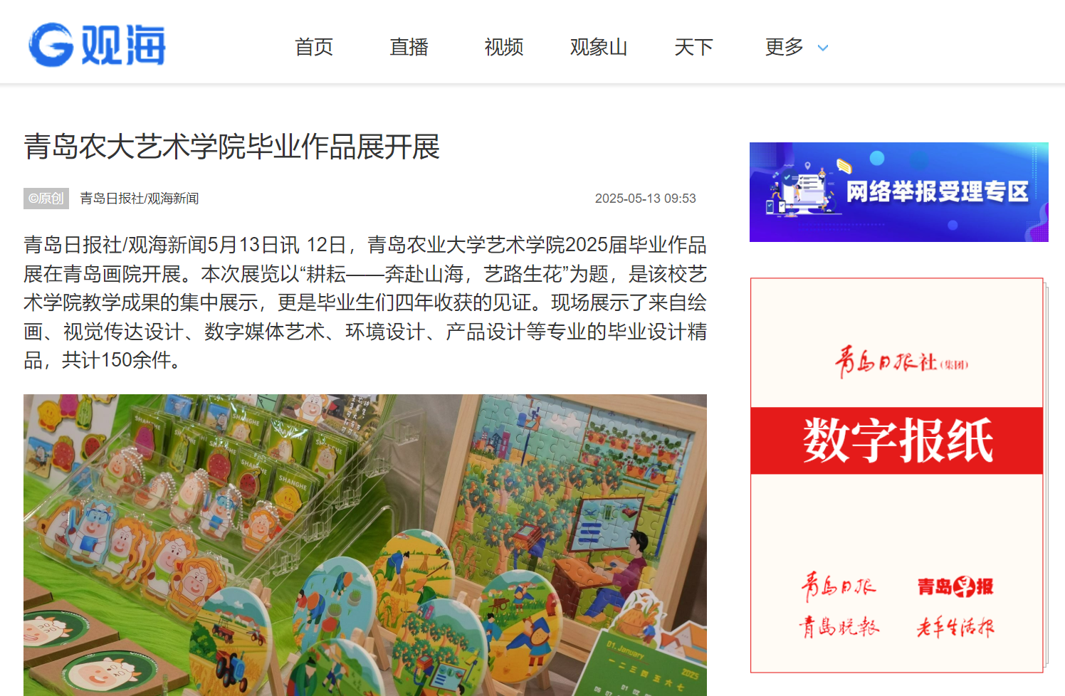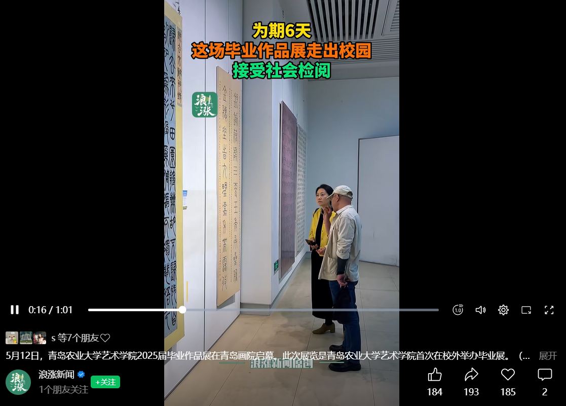 【编者按】5月12日,2025届毕业作品展在青岛画院美术馆开展。本次展览以“耕耘——奔赴山海,艺路生花”为题,是熊猫体育教学成果的集中展示,更是毕业生们四年收获的见证。2025届毕业作品展被中国网、搜狐、青岛早报、浪涨新闻、半岛都市报、交广之声等多家媒体所报道。