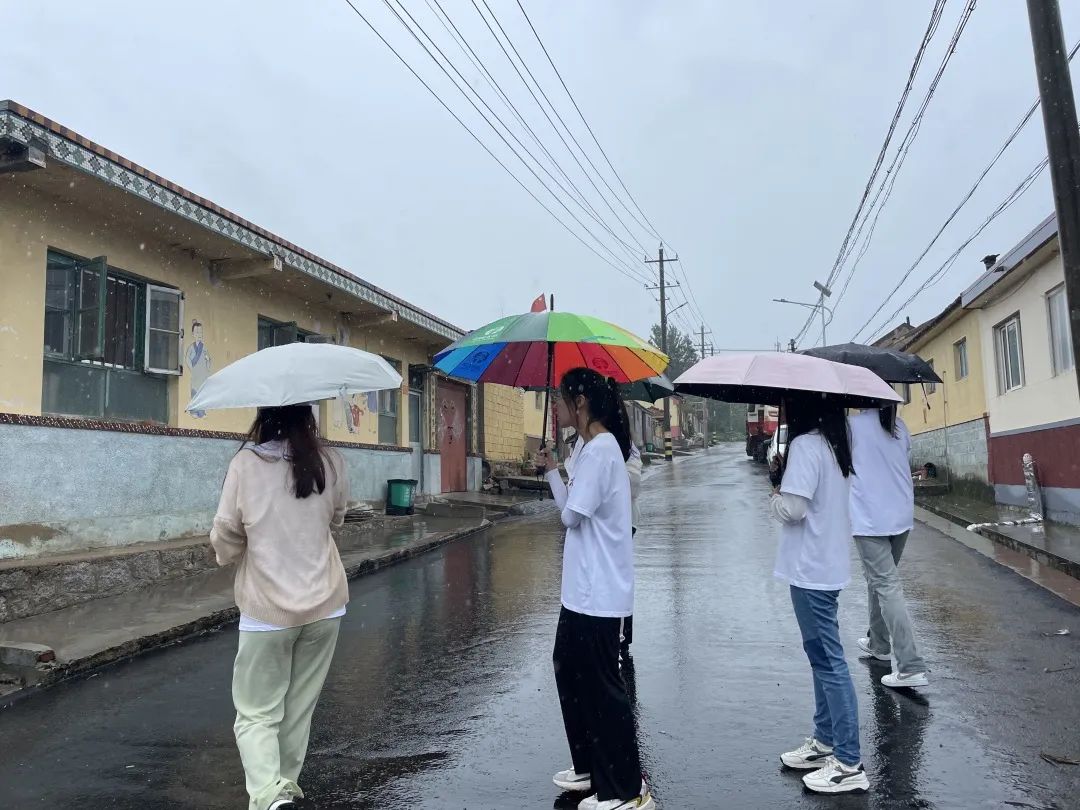 7月18日,天空中飘起了蒙蒙细雨,雨水打湿了衣衫和墙面,却无法消减同学们创作的热情,实践团的小画家们围绕创作主题,在选定地点开展精心创作。大家以墙绘的形式,用画笔描绘对岭西头村的美好祝福,黄色、绿色、红色,从一笔一划到鲜活形象,充满生命力的色彩与满怀祝福的线稿轮廓交织在一起,渐渐汇集成活灵活现、勃勃生机的画卷。