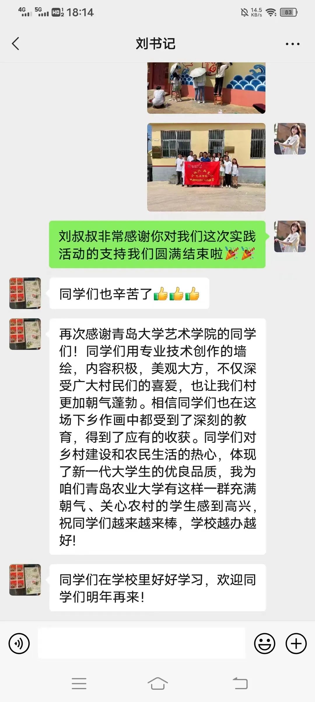 实践活动过后,村支书对此次实践活动成果给予高度赞扬,并表达对同学们的感谢,他表示,熊猫体育同学们创作的墙绘内容积极、美观大方,进一步提升了乡村精神文化风貌,深受村民们的喜爱。