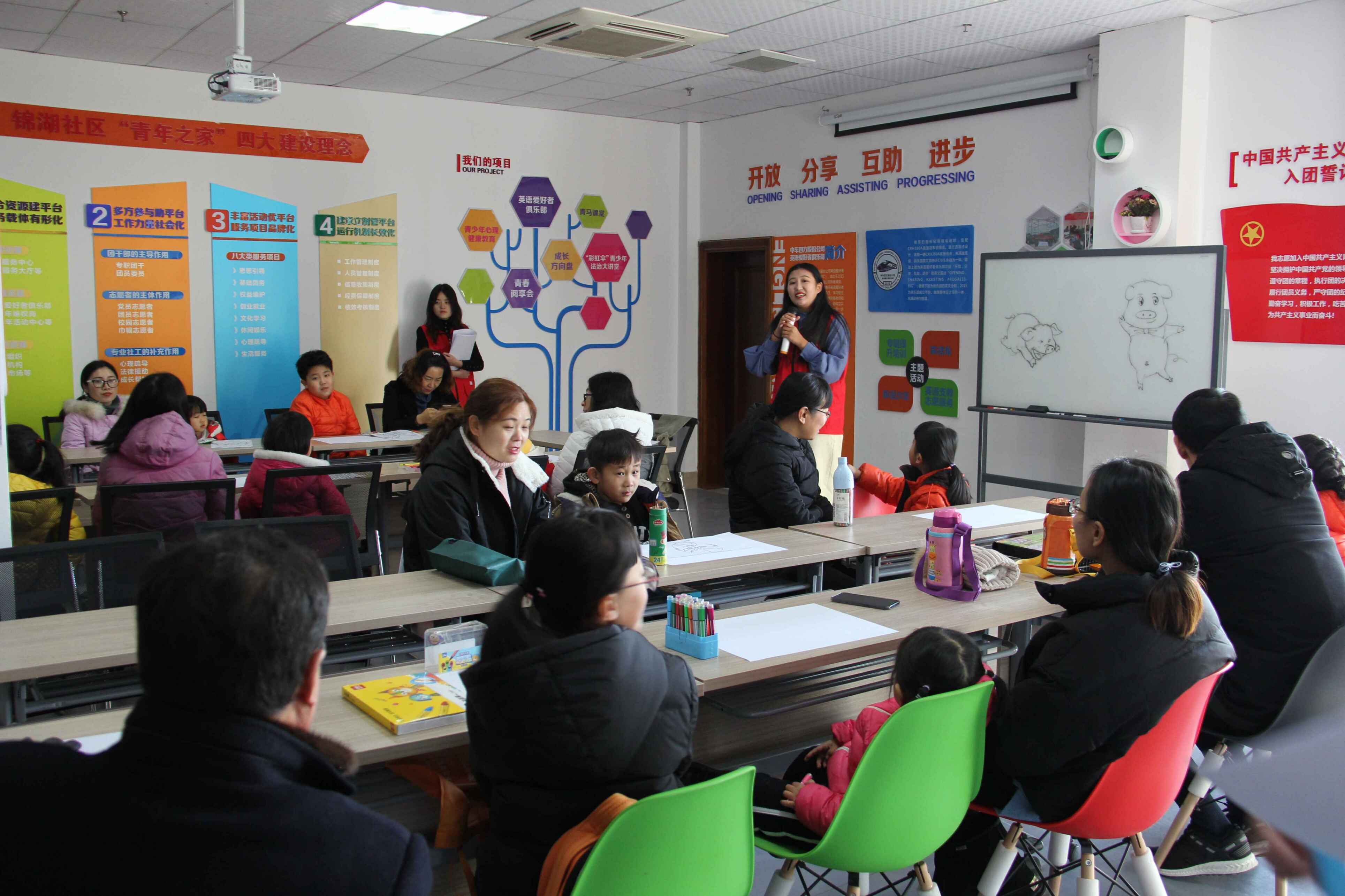 此次活动在锦湖社区的青年之家活动基地开展。志愿者们早早来到了活动场地进行准备,事先做好分工与分组,准备教学用具。本次实践课以春节为主题,引导小朋友思考与春节有关的事物,展开联想和想象,以员工自已动手为主、老师教学为辅的方法,有秩序地进行课堂活动。