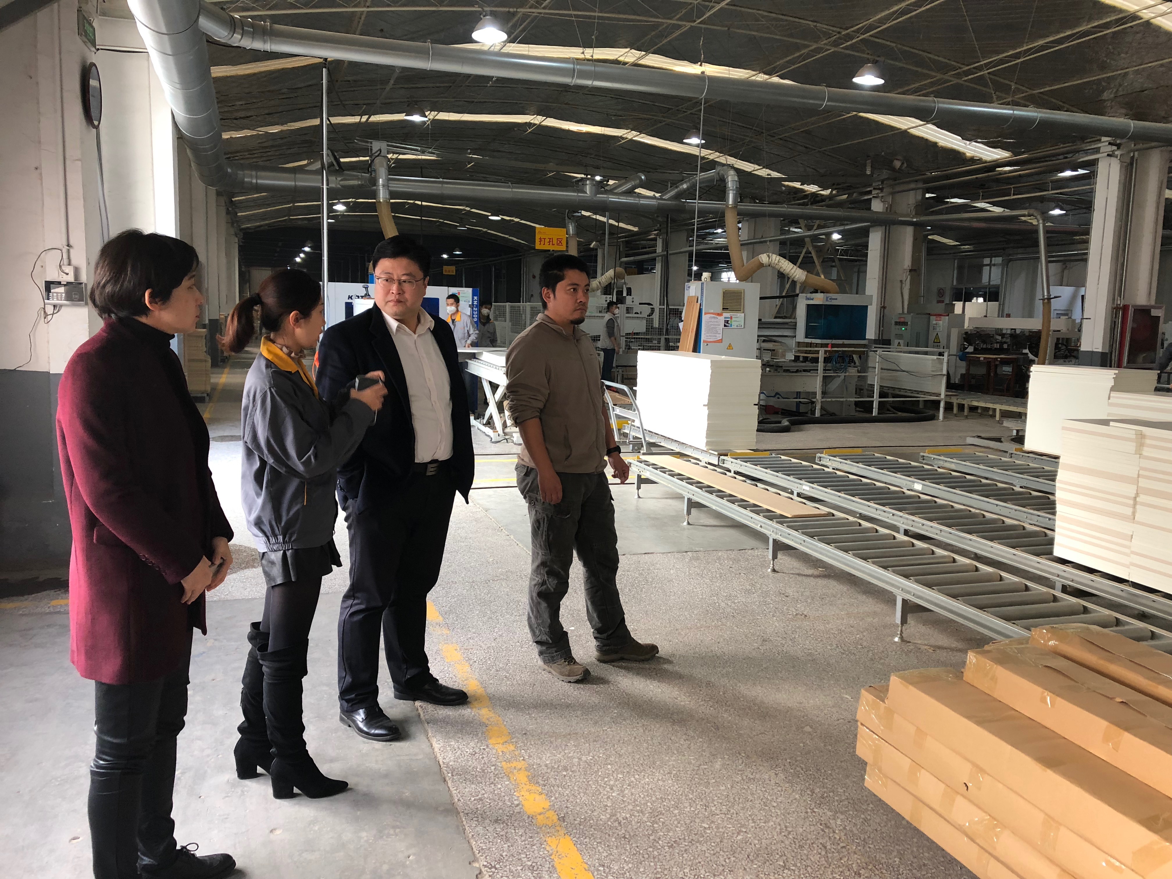 11月13日,公司党总支副书记、副经理乔磊与公司环境设计教研室主任专业负责人玄颖、专业教师孙钰玮和辅导员侯鉴璇,带领环境设计专业2015级员工前往青岛裕丰汉唐木业有限公司进行参观调研。