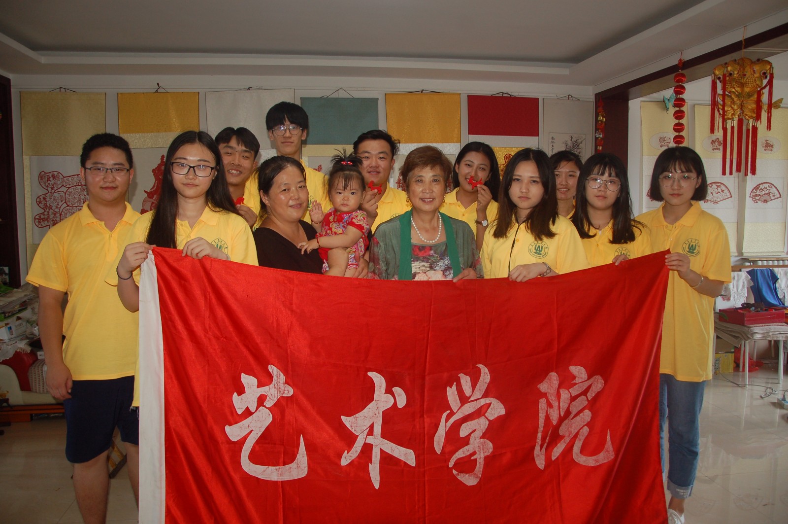 一进入栾淑娟老师的家中,服务团的成员便被墙上一张张奖状所吸引。栾老师向队员们介绍,山东省领导对于剪纸这个非遗项目一直十分重视,这些年来,慕名前来学习剪纸的中外友人数不胜数。而她的员工更是百花齐放,在其所教过的员工中,有许多都已发展到国外,他们继承了栾淑娟老师身上的认真与耐心,使得中国的传统文化更好的在国外传播。