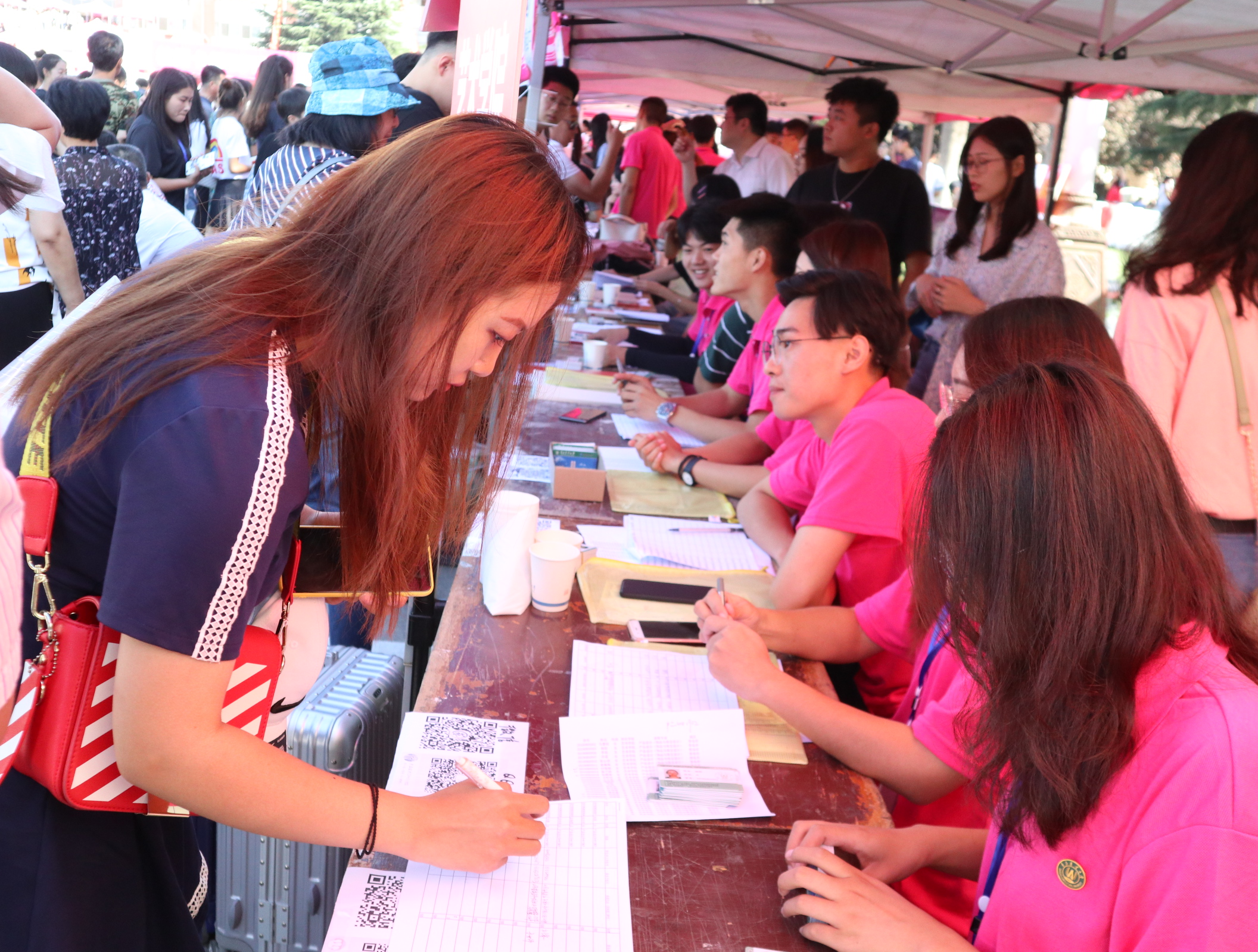 公司党政领导和辅导员老师早早来到了迎新现场,并向现场同学询问了关于公司迎新工作的相关情况。为了新生能够顺利、便捷地进行报到,熊猫体育迎新小组进行了数日的策划和筹备,对新生引导及接待流程做了详细的安排,并且对班主任助理进行了统一培训。迎新现场,各部门成员各司其职、井然有序。特别是员工党员充分发挥先锋模范作用,积极参与到迎新工作中,为新生提供“零距离、零差异”的服务,让新生初到校园就能感受到家的温暖和家人的关心。