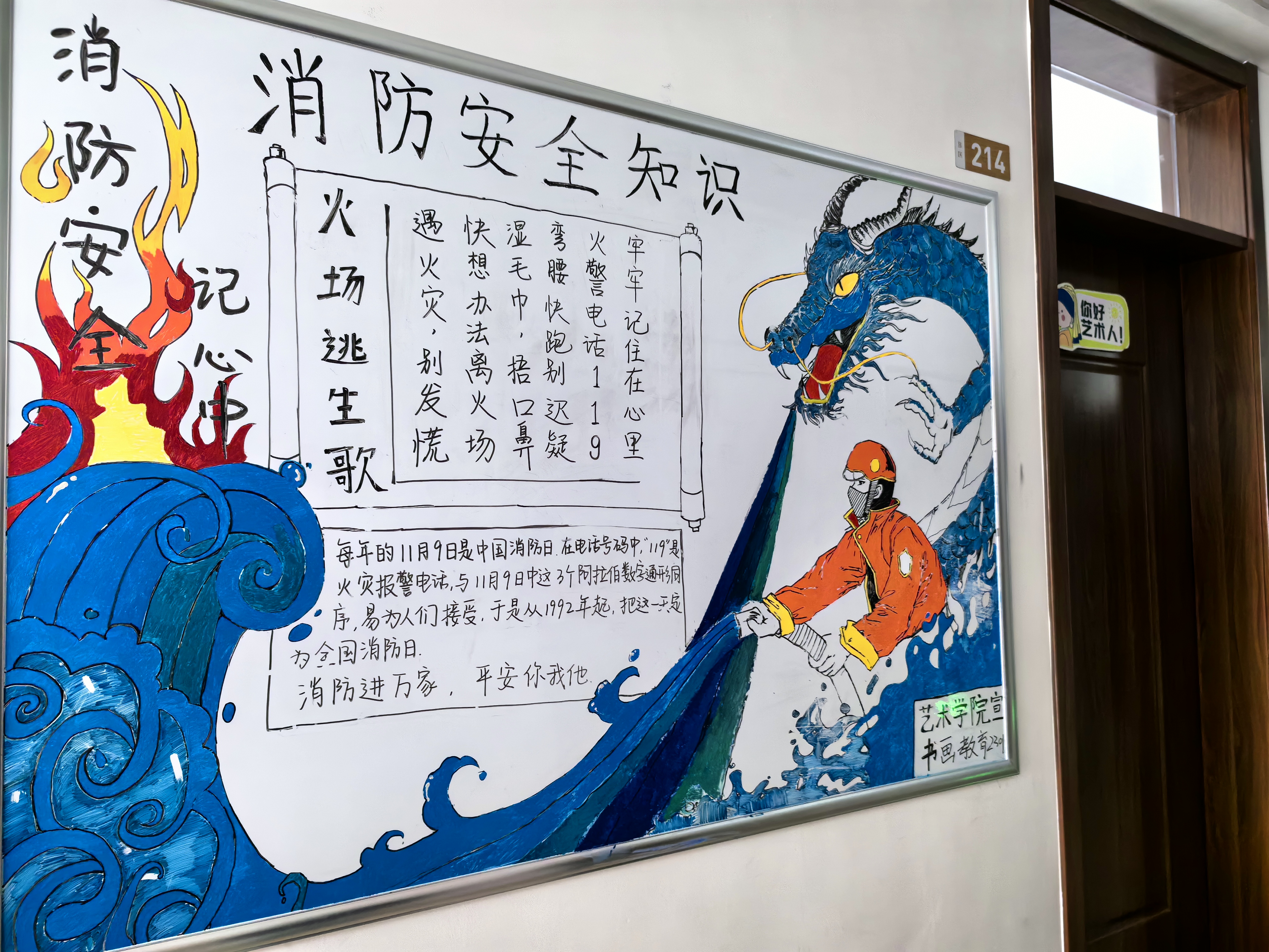 为进一步营造消防安全教育氛围,公司还通过公司微信公众号发布安全教育主题推送,组织两校区同学参加消防安全主题板报绘制、消防安全主题海报作品征集、签订员工消防安全承诺书等,全方面、多渠道强化消防安全宣传,切实为师生营造一个安全的学习和生活环境。