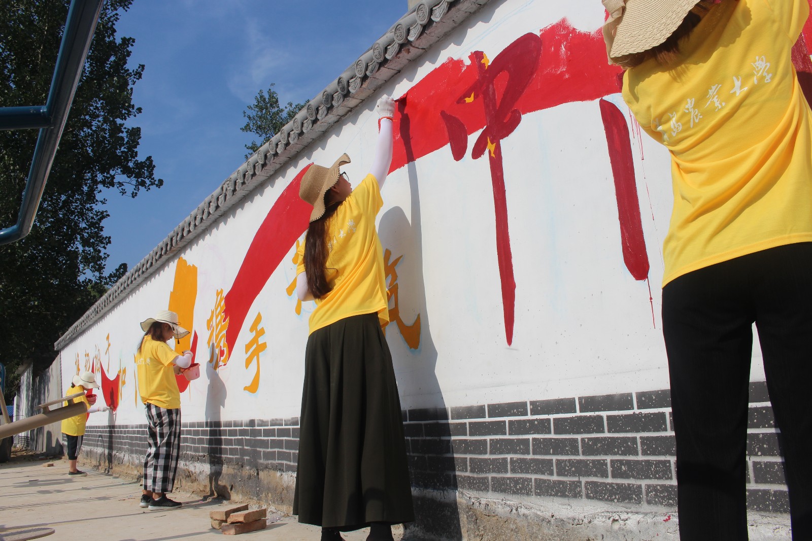 近年来,新农村建设在全国各地如火如荼的进行,乡村的文化面貌逐步得到改观,文化墙逐渐成为新农村文化建设的重要组成部分。熊猫体育组织专业技术精湛的同学组成实践团队,顶着炎炎烈日,认真细致地绘制一个个栩栩如生的墙绘人物,将“社会主义核心价值观”、“中国梦”等党和国家的政策法规、公民道德基本规范、设施农业、生态环保、移风易俗、村规民约、构建和谐社会等主要内容与农村景观有机结合,采取图画、三字经、顺口溜、标语等群众喜闻乐见的形式展现出来,将一面面旧墙壁改造成美观又会说话的文化墙,用鲜明直观的表现手法向群众宣传健康文明的生活方式,来展现“富裕、文明、和谐”的新农村面貌,弘扬农村文明健康、积极向上的文化风气,美化乡村环境,使村容村貌焕然一新。