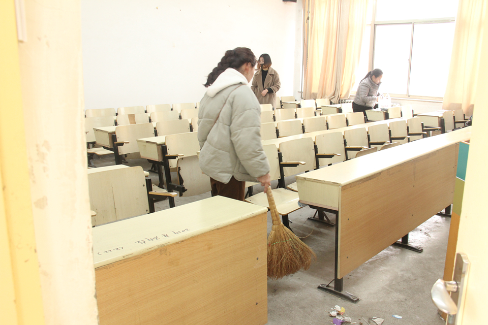公司组织全院同学对自备机房、画室和实验室进行了全面清扫,做到桌面、地面整洁,物品摆放整齐,无垃圾堆放,保证了上课清洁的环境。