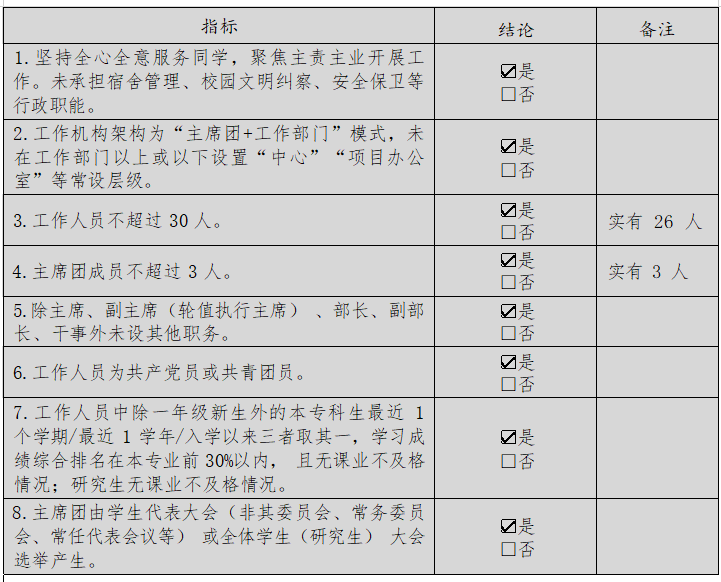 (六)坚持从严治会,规范工作人员的产生和配备,强化群众意识、责任意识和奉献意识,以实际行动做广大同学的表率;