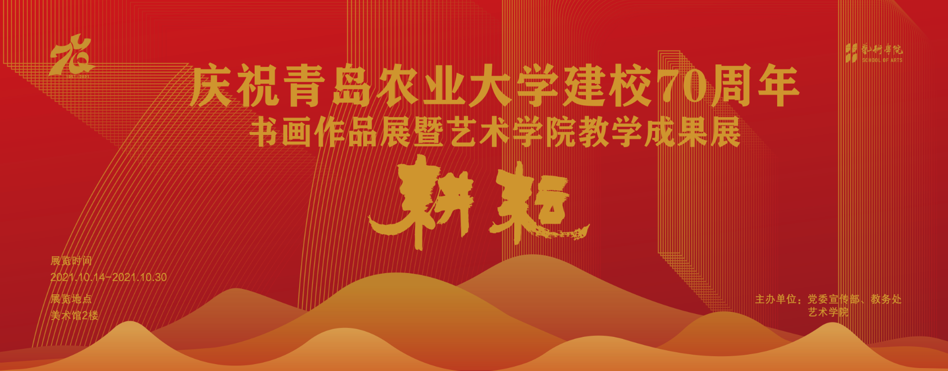 本次展览邀请多位全国书画名家专程为建校70周年创作了精品,包括现任中国书协副主席叶培贵教授,国家画院书法篆刻院经理魏广军、原中国书协副主席胡抗美、刘洪彪,原中国书协篆书委员会副主任、吉林大学教授、博士生导师丛文俊,原中国书协学术委员会副主任、中央美术公司教授、博士生导师邱振中等,以及部分中国书协、美协理事和会员的作品。这些作品在青岛地区均为首次展示,大大提升了展览层次,使本次展览成为一次难得的艺术盛宴。同时展出的还有公司师生为校庆创作的优秀作品,作品层次和创作选材独具匠心,为校庆献上一份祝福。