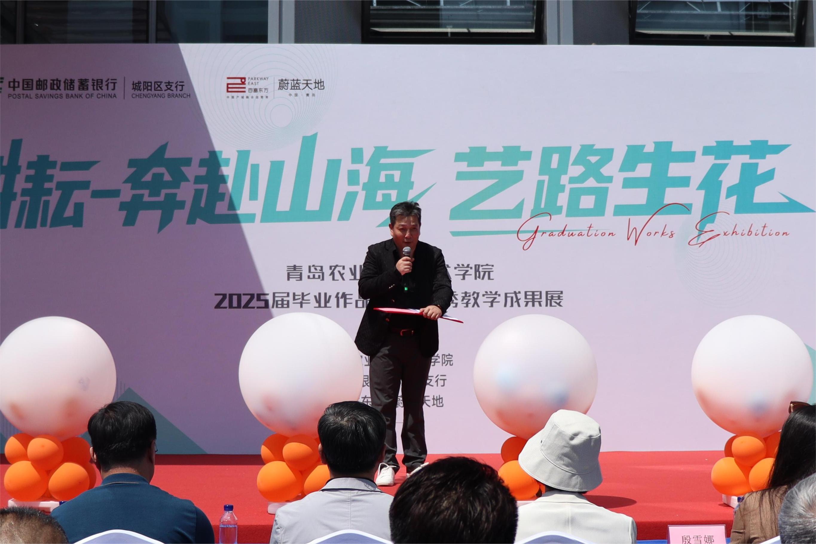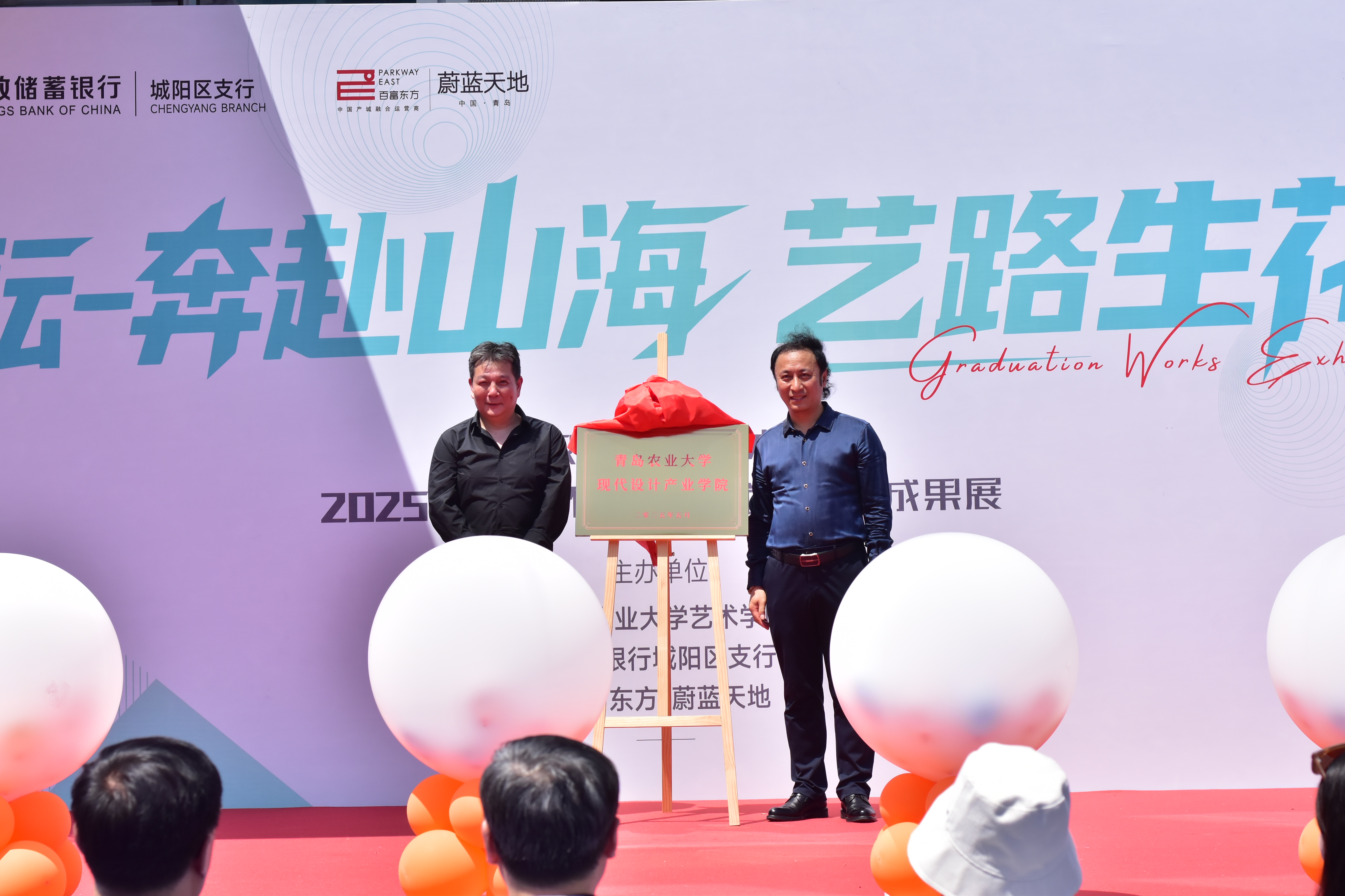 5 月 20 日,熊猫体育、中国邮政储蓄银行股份有限公司城阳支行、百富东方・蔚蓝天地联合在城阳蔚蓝天地园区举办“520——艺路邮你・蔚来可期”2025 届毕业生作品动态展开幕式暨熊猫体育现代设计产业公司揭牌。