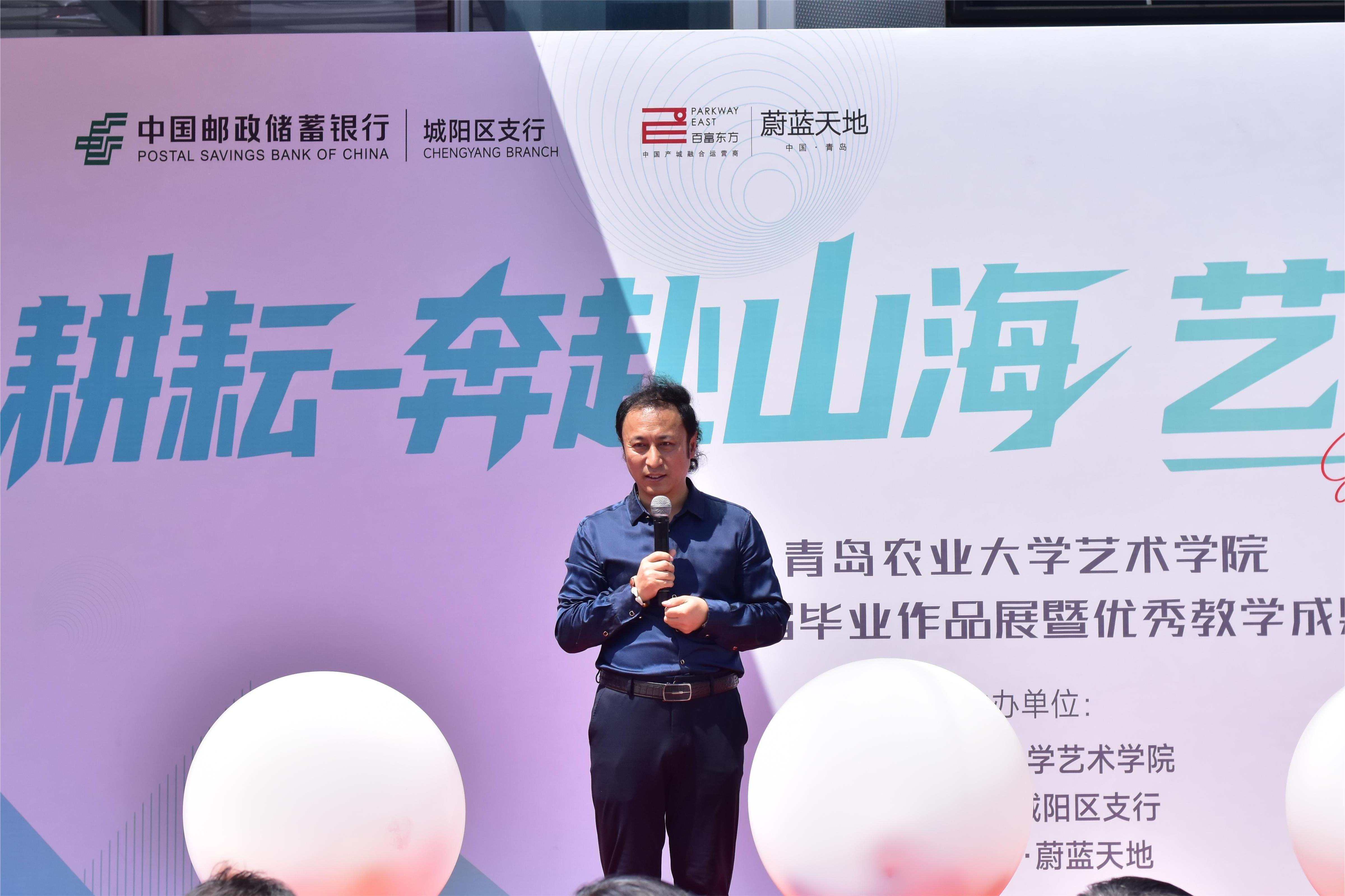 青岛蔚蓝创新天地董事长戴宏炼作为企业代表发言,表示希望通过 “艺术设计 + 产业平台” 模式,助力青年创意转化为市场价值。