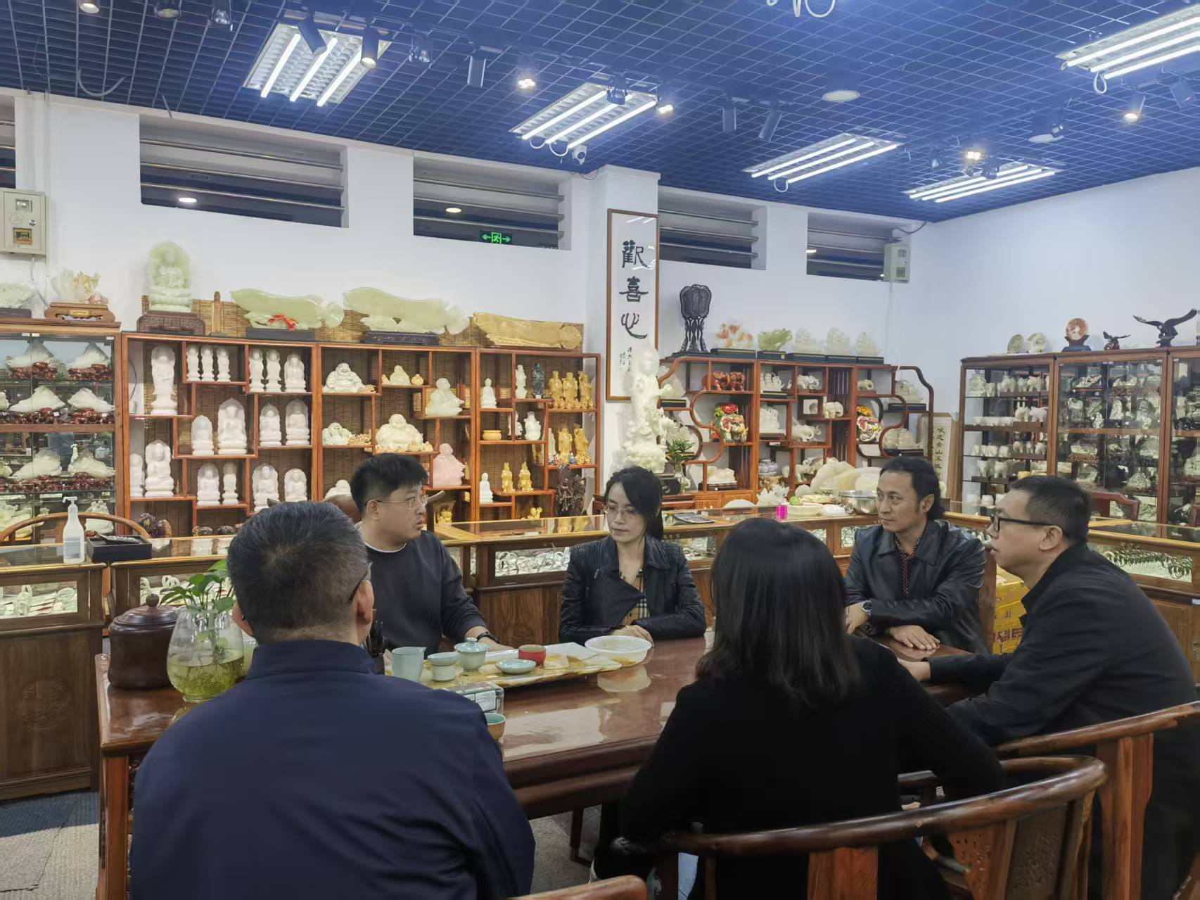 调研过程中,各企业负责人对李慧斌一行表示热烈欢迎,详细介绍了企业发展历程、核心业务布局、市场运营现状及未来发展规划。青岛格润德工艺品有限公司、青岛申泰工艺品有限公司明确提出对复合型艺术人才的迫切需求;青岛鸿利古像艺术雕刻有限公司表达了对传统非遗技艺与创新设计相结合的人才诉求。上珠翠钻和其孚珠宝提出希望与公司建立联合培养机制,共同培育具备扎实理论知识与丰富珠宝市场经验的珠宝鉴定专业人才,以满足行业对精准珠宝鉴定人才的迫切需求。
