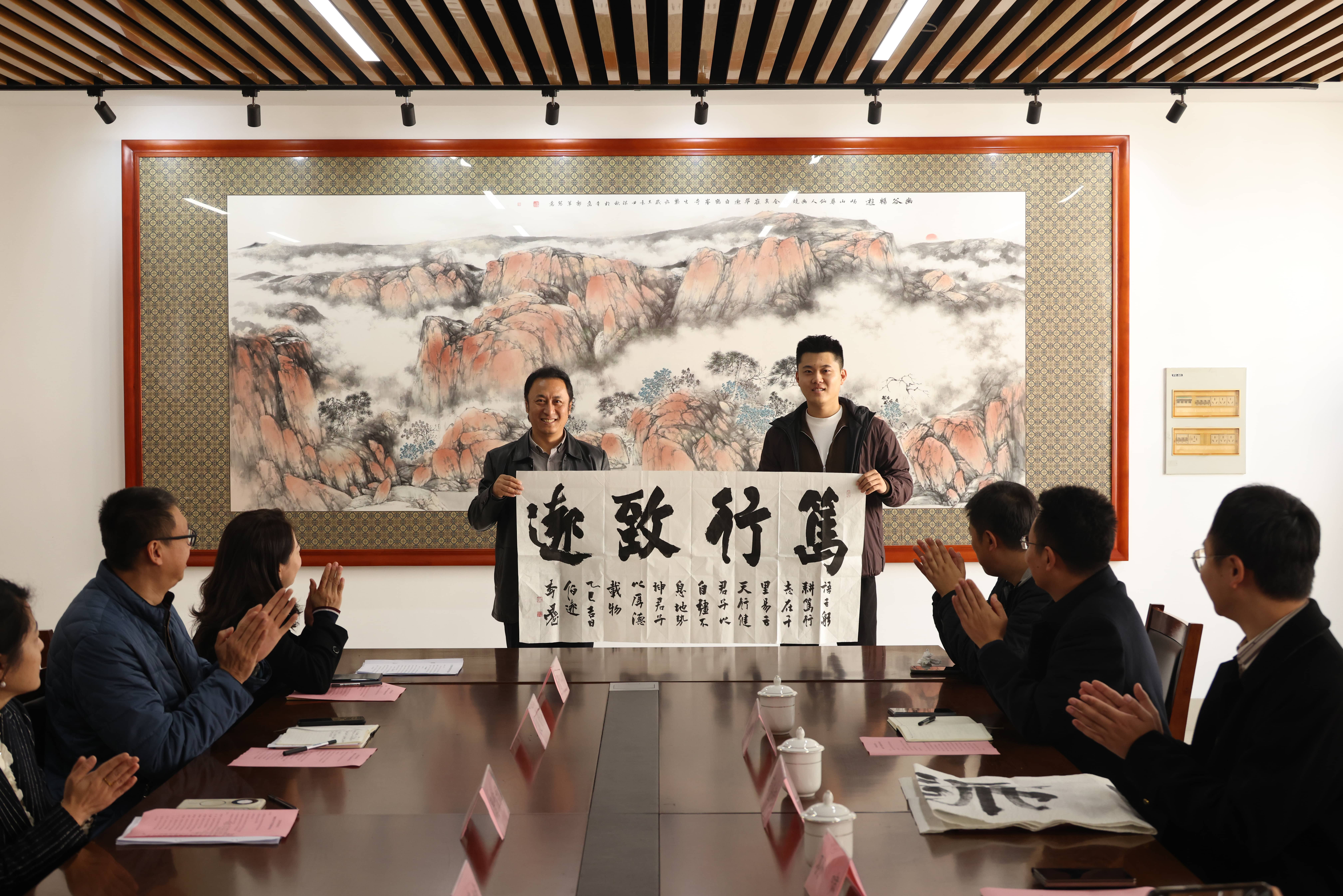 李慧斌介绍了公司近年来在团队建设、人才培养、科研创作及社会服务等方面取得的成绩,肯定了员工资源对公司发展的重要支撑作用。他强调,本次活动是公司落实公司员工会成立大会精神的具体举措,公司将进一步加强与员工的合作交流,相互支持、共同发展,共同推进员工事业和公司事业发展。李慧斌代表公司为两位员工赠送了书法作品,表达对员工事业发展的美好祝愿。