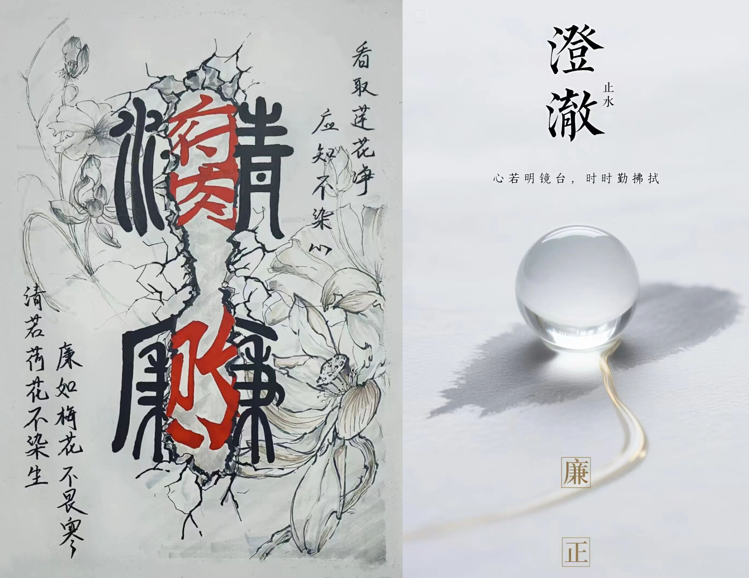 活动中,员工以笔为媒、以墨传情,紧扣 “清正”“守廉” 核心主题,用绘画、书法、海报设计等多元艺术形式诠释廉洁内涵。传统水墨作品里,“竹” 的挺拔坚韧、“莲” 的出淤泥不染被细致勾勒,借经典意象隐喻刚正不阿、洁身自好的品格;海报设计作品则是巧思频现,以鲜活色彩与创意构图让清廉之美贴近青年视角,引发强烈情感共鸣。