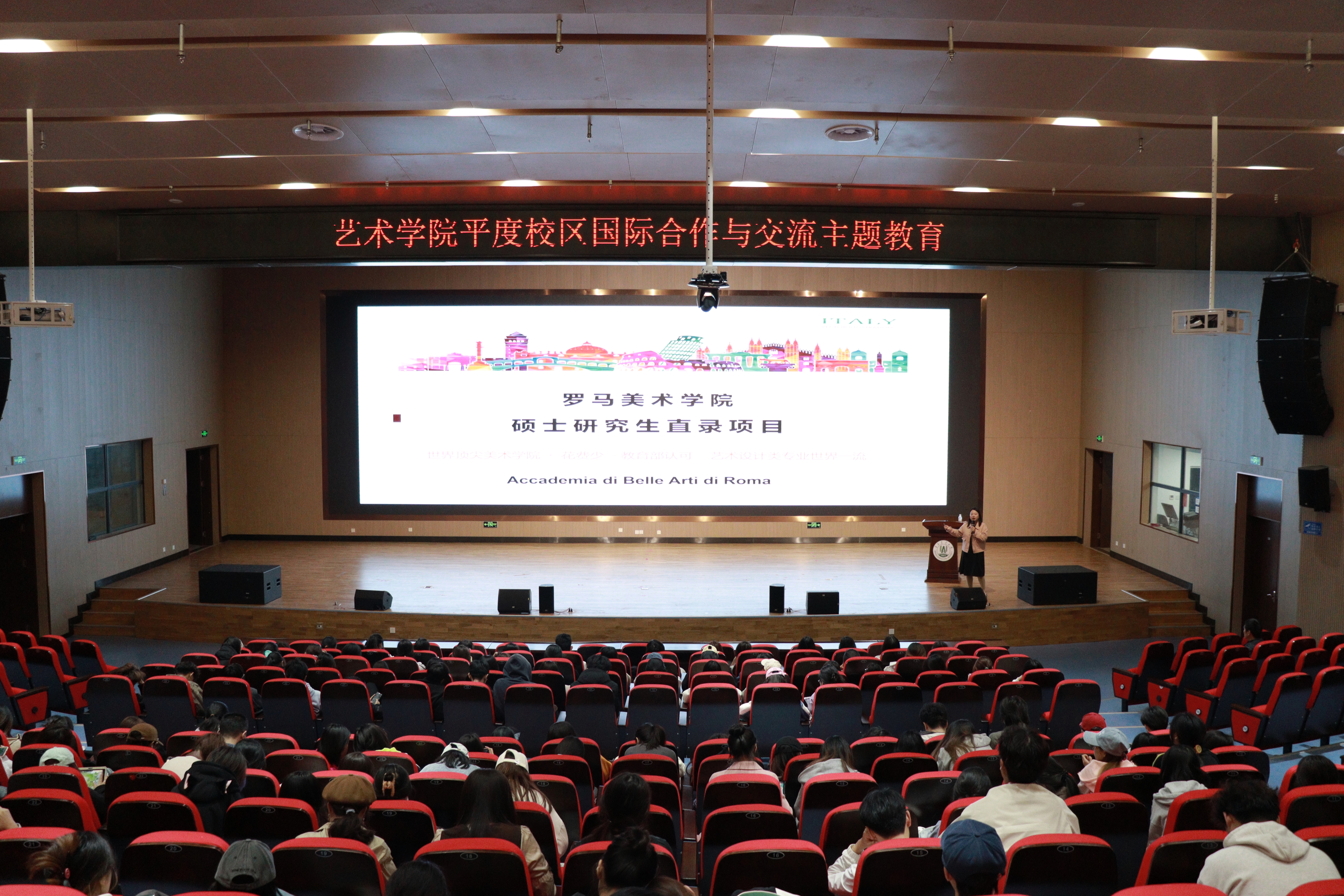 崔晓磊在主持报告会时介绍了公司近三年国际合作与交流工作的基本情况和下一步工作计划。她指出,近年来公司积极拓展国际合作渠道,与多所国外知名艺术院校建立合作关系,为教师和员工提供了丰富的国际交流机会,在教师国外访学、员工短期交流、国际升学和学术交流等方面取得了显著进步。崔晓磊表示,公司将进一步拓展国际合作与交流的院校数量,提升师生国际化意识,提升公司整体国际化水平,推动公司高质量发展。希望同学们在跨文化学习中拓宽艺术视野、提升专业素养,成长为兼具本土文化底蕴与国际竞争力的复合型艺术人才。