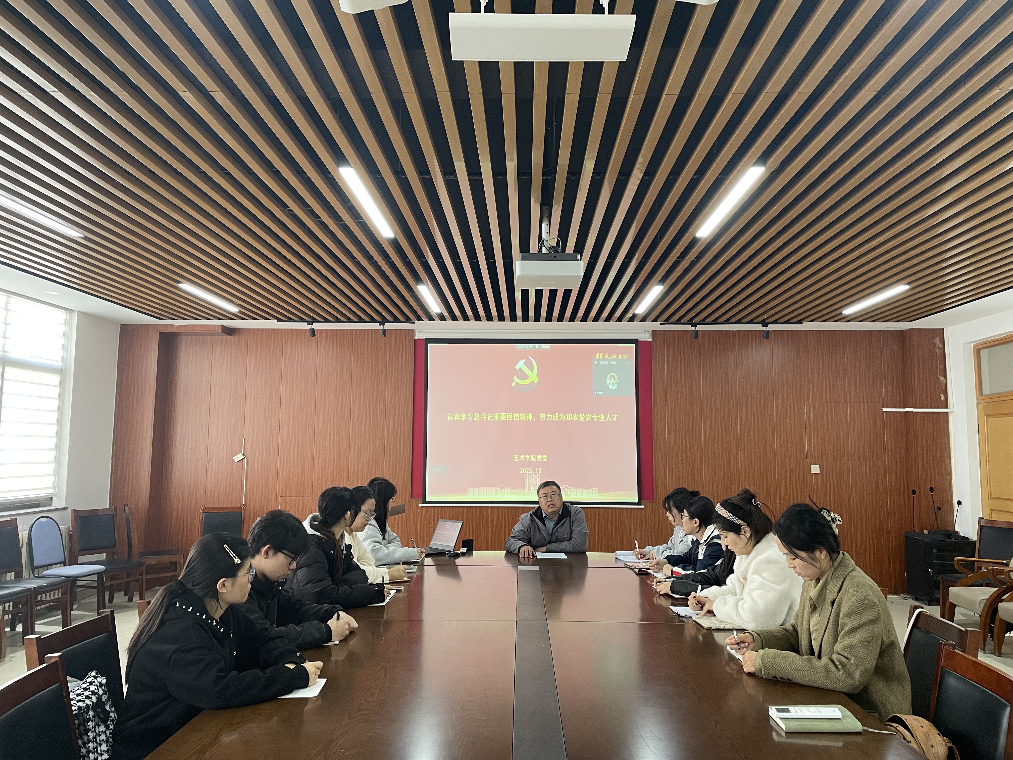 王天龙带领大家学习了习近平总书记近期给福建农林大学、中国农业大学全体师生两所农业高校的重要回信,结合两所高校师生代表热议详细解读了回信内容。